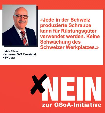 ein weiterer Versuch der Armeeabschaffer, die soziale Sicherheit in unserem Land zu gefährden. So will man unsere Sozialwerke, Pensionskassen und unsere Nationalbank mit starren Regeln und Quoten mit Blick auf die Anlagestrategien derart extrem beeinträchtigen, dass sie nicht mehr als fünf Prozent ihres Umsatzes mit der Herstellung von Rüstungsgütern erwirtschaften sollen. Freie Marktwirtschaft und ein gesundes Vertrauen in besagte Institutionen tönt anders.