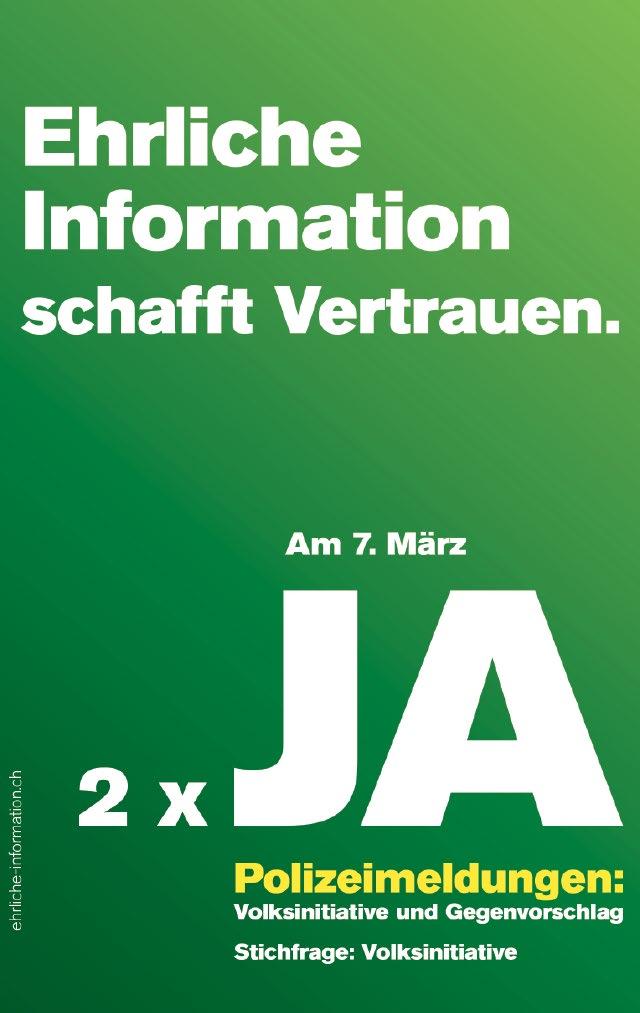 Am 7. März stimmt die Zürcher Bevölkerung sowohl über die kantonale Volksinitiative «Bei Polizeimeldungen sind die Nationalitäten anzugeben» wie auch über den kantonsrätlichen Gegenvorschlag zur Initiative ab. Das Volksbegehren will, dass die Information der Behörden wieder vollständig und offen erfolgt. In der Stadt Zürich wird heute die Nationalität von mutmasslichen Tätern nur auf Nachfrage hin bekannt gegeben.
