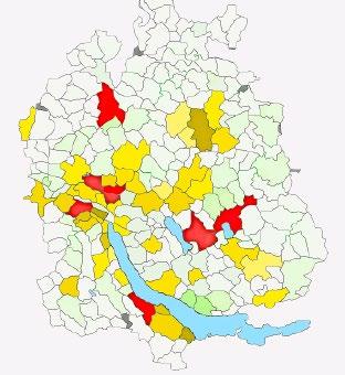 Corona-Ampelsystem pro Gemeinde Rot: härtere Massnahmen, Gelb: mittlere Massnahmen, Grün: geringe Massnahmen Quelle: Eigene Darstellung
