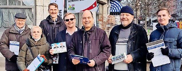 Die Kandidaten der Kreispartei 10 verstärkt mit Roland Scheck, Stadtratskandidat, halten die Stellung in Höngg.