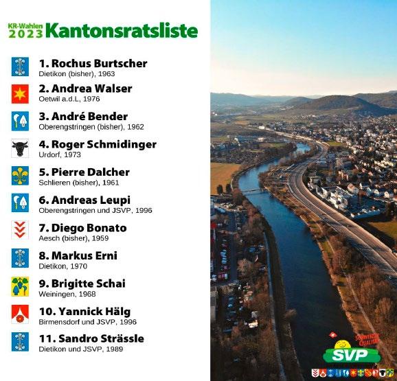 Erscheint jeden Freitag. Inseratenannahme: SVP des Kantons Zürich, Elisabeth Liebi, Lagerstrasse 14, 8600 Dübendorf, Telefon 044 217 77 66, inserate@svp-zuerich.ch. Inseratenschluss: Mittwoch, 12.00 Uhr. Layout: cube media AG , Binzstrasse 9, 8045 Zürich. Druck: Mittelland Zeitungsdruck AG (AZ Print), Neumattstrasse 1, CH -5001 Aarau.