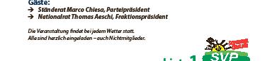 Erscheint jeden Freitag. Inseratenannahme: SVP des Kantons Zürich, Lagerstrasse 14, 8600 Dübendorf, Telefon 044 217 77 63, inserate@svp-zuerich.ch. Inseratenschluss: Mittwoch, 12.00 Uhr. Veranstaltungsmeldungen: veranstaltungen@svp-zuerich.ch Layout: cube media, Binzstrasse 9, 8045 Zürich. Druck: Mittelland Zeitungsdruck AG (AZ Print), Neumattstrasse 1, 5001 Aarau.