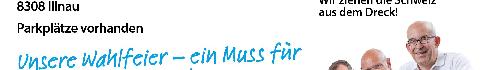 Erscheint jeden Freitag. Inseratenannahme: SVP des Kantons Zürich, Lagerstrasse 14, 8600 Dübendorf, Telefon 044 217 77 63, inserate@svp-zuerich.ch. Inseratenschluss: Mittwoch, 12.00 Uhr. Veranstaltungsmeldungen: veranstaltungen@svp-zuerich.ch Layout: cube media, Binzstrasse 9, 8045 Zürich. Druck: Mittelland Zeitungsdruck AG (AZ Print), Neumattstrasse 1, 5001 Aarau.