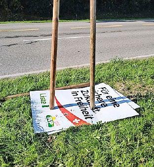 Antidemokraten haben SVP -Plakate in Fällanden systematisch zerstört. Bild: ZVG