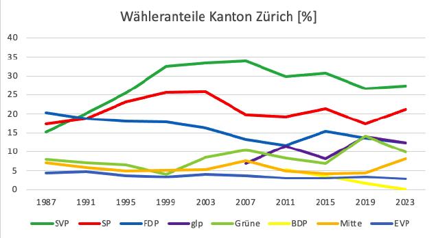 Wähleranteil SVP Kanton Zürich
