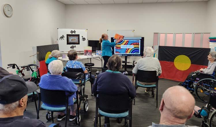 For NAIDOC week, Ningana arranged an activity called ‘Exploring NAIDOC’ where staff talked to our residents about Aboriginal history, traditions, and music. Our staff also did some storytelling which our residents enjoyed. Overall, it was a very educational and innovative session for them. Then for art and craft our residents did some dot painting as well as scratching, where they enjoyed seeing different shapes of animals take form to then turn them into beautiful Indigenous designs.