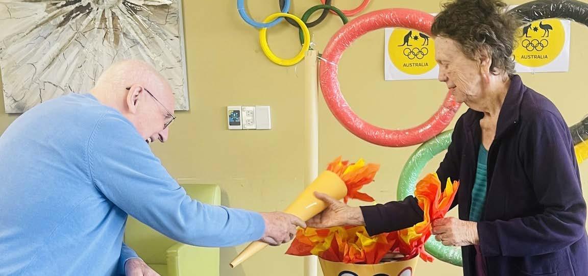 Kingia and Tandara residents had separate Olympics activities but both put on a Paris-worthy performance! They had a complete set up including a torch relay, three games to play and an award ceremony with podiums, where the winners proudly posed with their medals on. They were thrilled to see that javelin throw was done using the giant Olympic rings. They also cheered on our Australian Olympic team with their green and yellow ribbon dance.