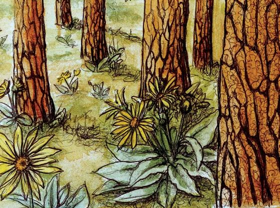 A bubble cap is the common term for the synthetic pheromone packets used to deter bark beetles. MCH and Verbenone have been artificially synthesized by humans as a bio-chemical pesticide and are packaged into individual slow-release pouches, aka bubble caps. Verbenone (4,6,6-trimethylbicyclo-[3.1.1]hept-3-en-2-one), is the antiaggregation pheromone for mountain pine beetles, which primarily affect ponderosa pine and lodgepole pine. MCH (3-methylcyclohex-2-en-1-one), is the anti-aggregation pheromone for Douglas-fir beetles; you can guess which species they prefer! When infecting a tree, both of these beetle species release pheromones to attract other beetles in order to overwhelm the tree’s defenses. Once they achieve this, the beetles then release anti-aggregation pheromones that tell other beetles that the tree is full and they should move on. Bubble caps mimic this by sending out the same message before the tree has been compromised. However, bubble caps are only one tool in the toolbox for managing bark beetles in a forest. Oftentimes they are used for high-value areas for shortterm forest management. If there is a major outbreak of beetles for a few years, they are used to protect an area of trees. Another important tool that addresses underlying issues that lead trees to being susceptible is forest thinning. A better long-term practice, thinning can reduce competition for water, nutrients, and sunlight, making forests more resilient to bark beetles. Maintaining diverse forests with varying ages, sizes, and species of trees will also increase resilience. For example, if a forest is very dense, has greater than 50% Douglas fir, has an average age greater than 120 years, and average tree size is greater than 14 inches in diameter, then that forest