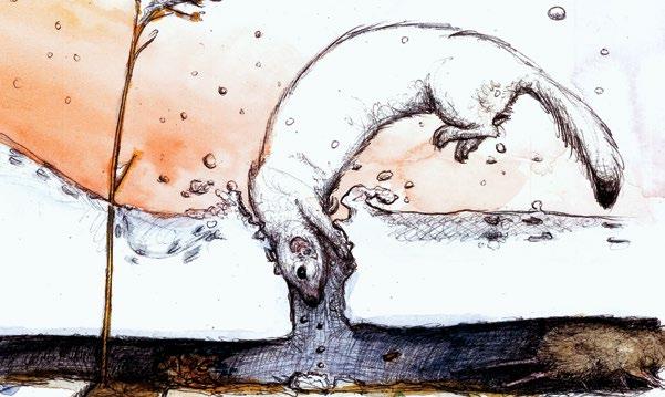 With hearts racing at over 1,000 beats per minute, shrews are not designed to hibernate, so in the winter, they stay active in the subnivean and sub-ice zones, rushing about below the insulative blanket of snow to find overwintering grubs, hibernating insects, worms and amphibians, needing to frantically eat anything they can find that’s rich in fat and protein. With a warm winter like we are having this year, they are forced to forage in the open, which makes them more vulnerable to predators like hawks, owls, weasels, and foxes. We don’t fully understand the impact of light or missing snow cover on insect populations, which keep shrews and many other animals fed, plants pollinated, and the very foundation of our ecological web healthy. Warm winters favor some insects and reduce the populations of others, so these cycles likely have large effects we have yet to understand on shrews and the rest of us.