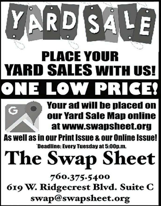 Classified ads in The Swap Sheet are economically priced with you in mind. 20 words for $8\9.35 will be placed online at www.swapsheet.org and will be in print and online too. If it is a yard sale for one low price you will be placed online, in print and the yard sale map. TFN