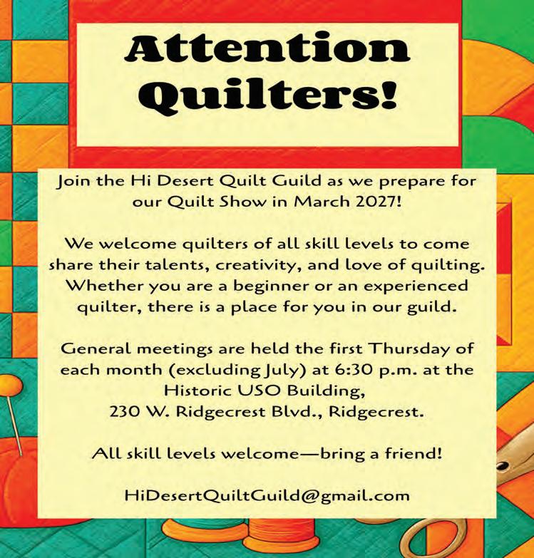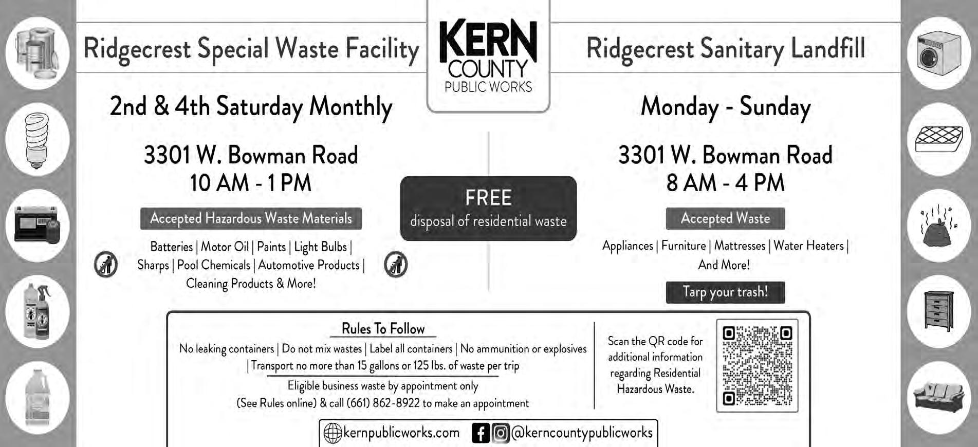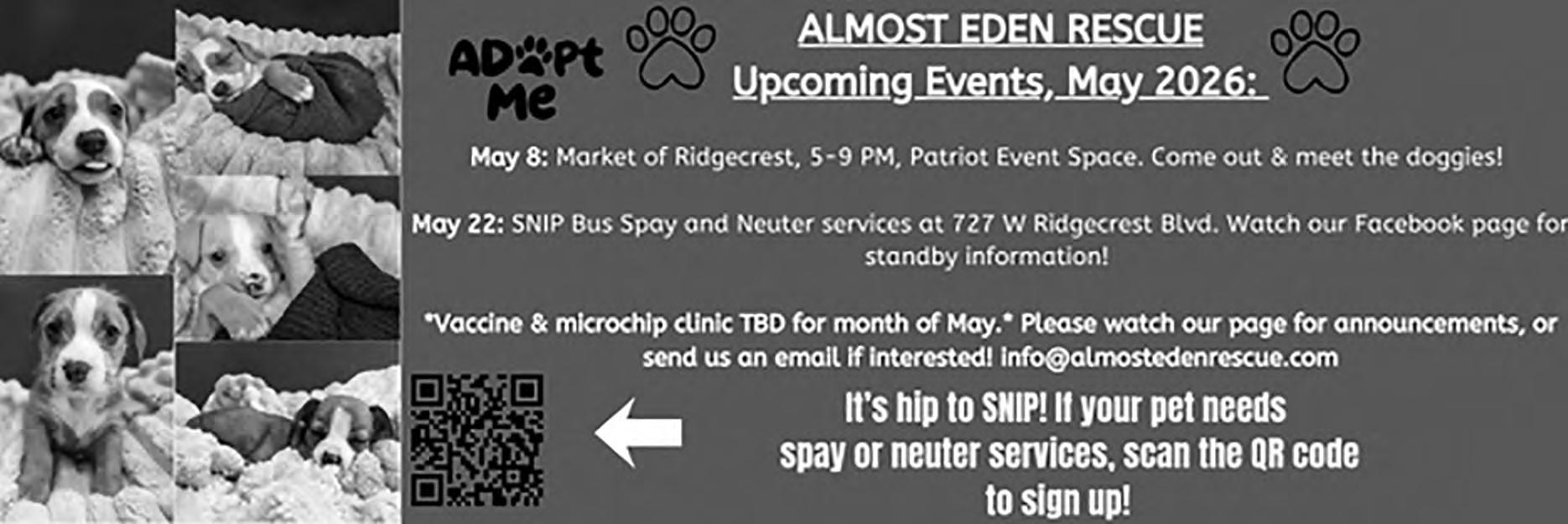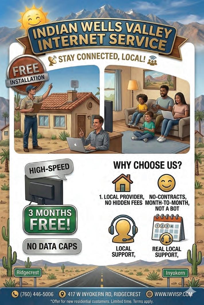 Our company is interested in presenting opportunities to serve in the Indian Wells Valley! Be it for a community organization, government, hospital, school, service club or wherever, we will help make them known to you. Here is one opportunity...