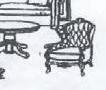 Living room furniture, dining room table and 8 chairs. California king bed, Fulton patio furniture, ping pong table and accessories, secretarial desk, long computer desk, books, kitchen items,