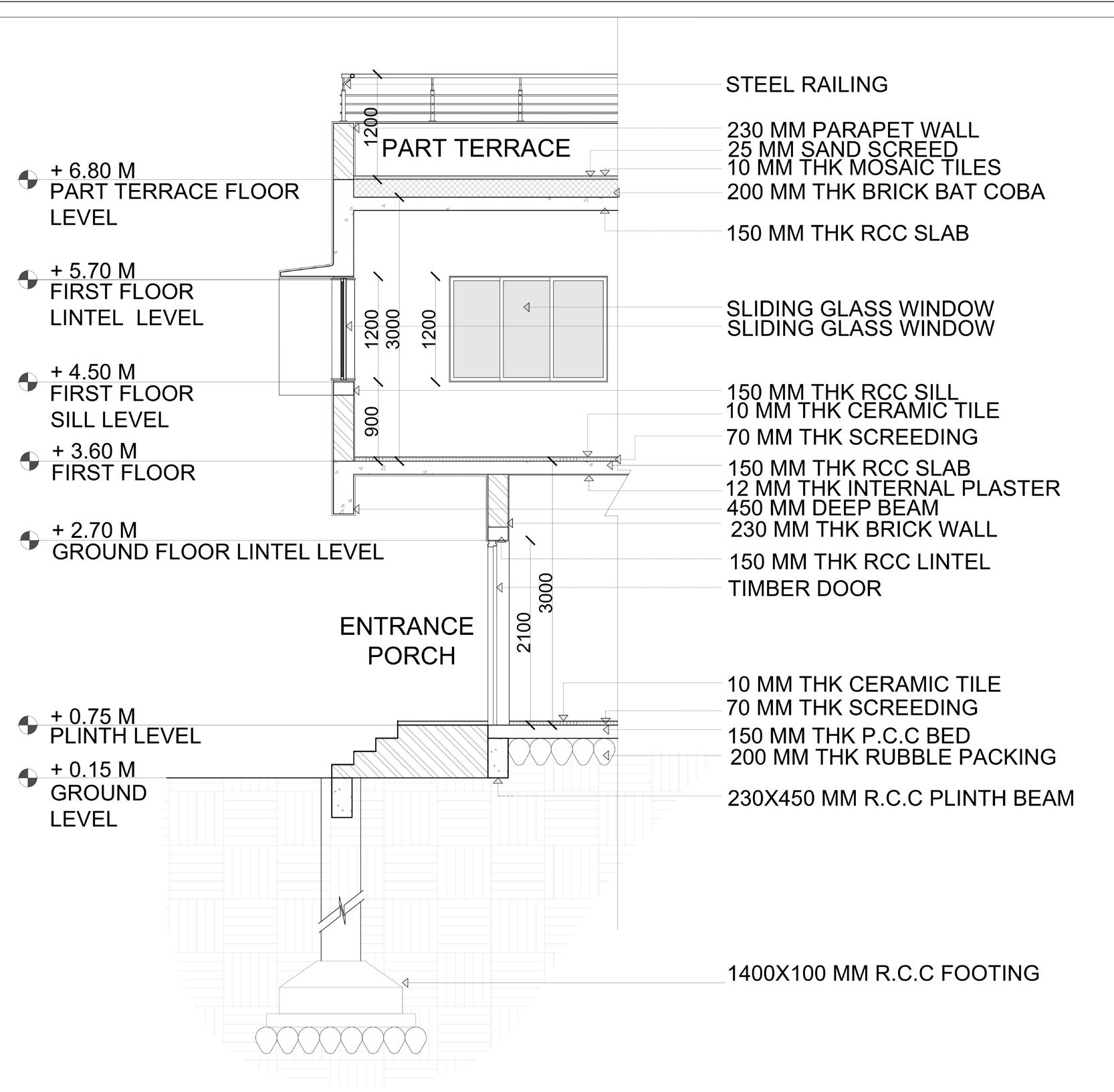 A second home was designed as a load bearing structure with random rubble masonry used in walls. The foundation layout and details were designed. Foundation- Sand packed foundation laid by dugging trenches. The foundation differs according to the postion of the wall in the structure.