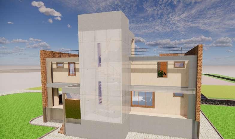 A farmhouse was designed with RCC In the middle of lush farms. The stairwell elevation with tinted glass windows was designed to have a play of light and ventilation. Electrical layout was designed.