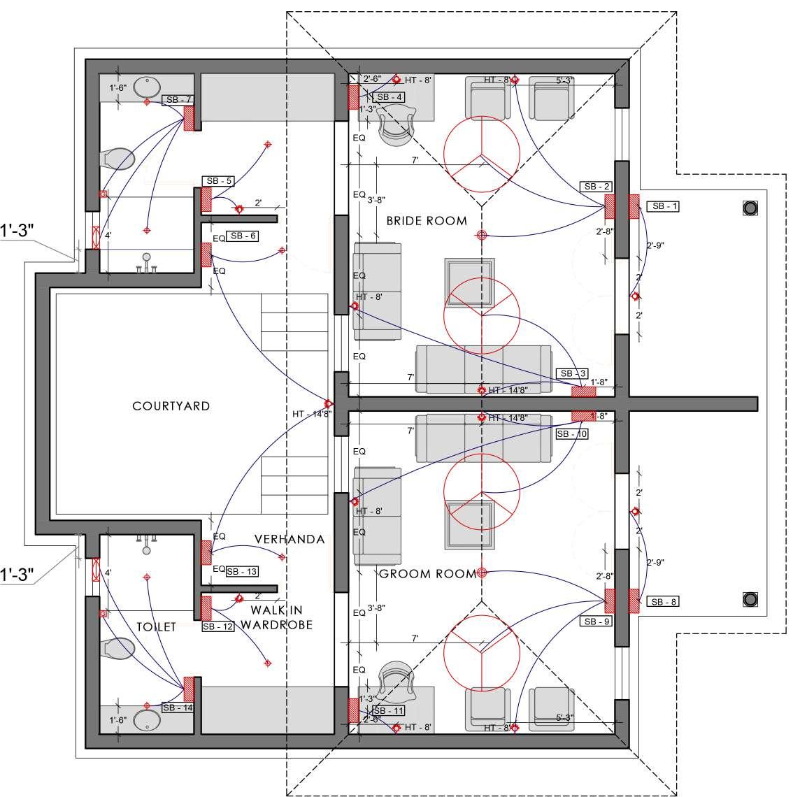 LAYOUT OF BRIDE’S AND GROOM;S ROOM ELECTRICAL LAYOUT