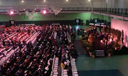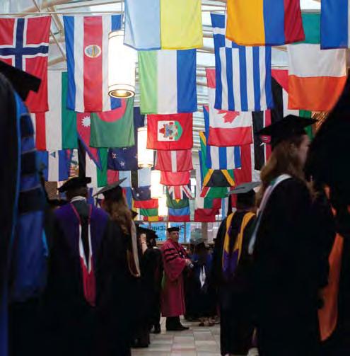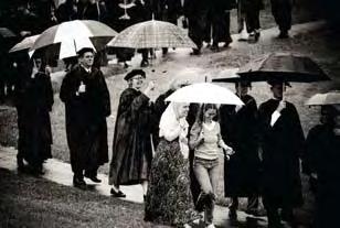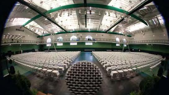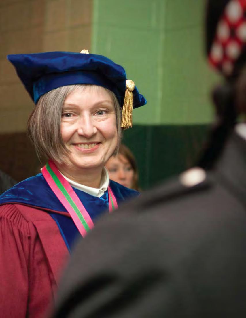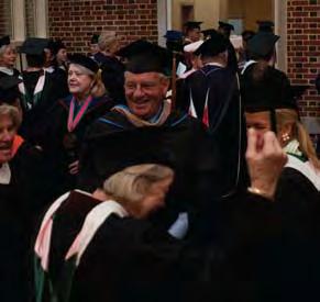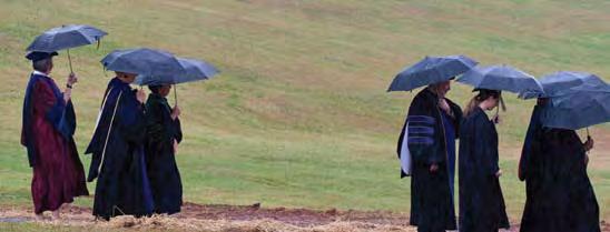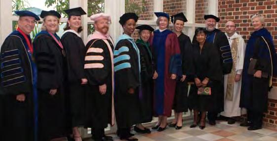 the albemarle Pipes and Drums Band led the inaugural procession from Prothro Hall to the new Fitness and athletics Center through a dramatic downpour. Braving the weather, robed constituencies marched one after the other through the rain, buoyed by the cadence of the drums and resonating pipes. the rain became a challenge that created a kind of bond—in this case, most were quietly chuckling about the common experience of wet feet. it also rendered stepping foot inside the new Fitness and athletics Center for the first time all the more rewarding.