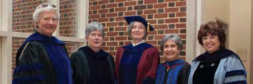 Delegates and representatives from President Parker’s (center) alma mater, Bryn Mawr College, included L–R: President Emeritus Mary Patterson McPherson, Dean Karen Tidmarsh, President Jo Ellen Parker, former Dean Michele Myers, and president of Bryn Mawr College Judith Shapiro.
