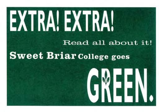 Our teaching focus is shifting to prepare students to live in a world that is digitally sophisticated. We practice what we preach: Instead of a traditional card this year, you can view our not-so-traditional holiday video message at www.sbc.edu. In keeping with our pledge to lessen our carbon footprint, more of our communications will be delivered electronically. Please keep us informed of your current email address at alumnae@ sbc.edu. Our ultimate responsibility is to generate the future that our students will lead. Let our legacy be carrying Sweet Briar’s tradition of excellence into the digital age.