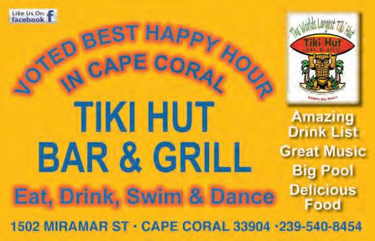 There'salwayssomethingtodoattheTikiHutBar& GrillattheDolphinKeyResort.LocatedinDowntownCape Coral,the biggestTiki barinthe worldoffers liveentertainment Wednesday through Sunday,Key WestStyle Relax