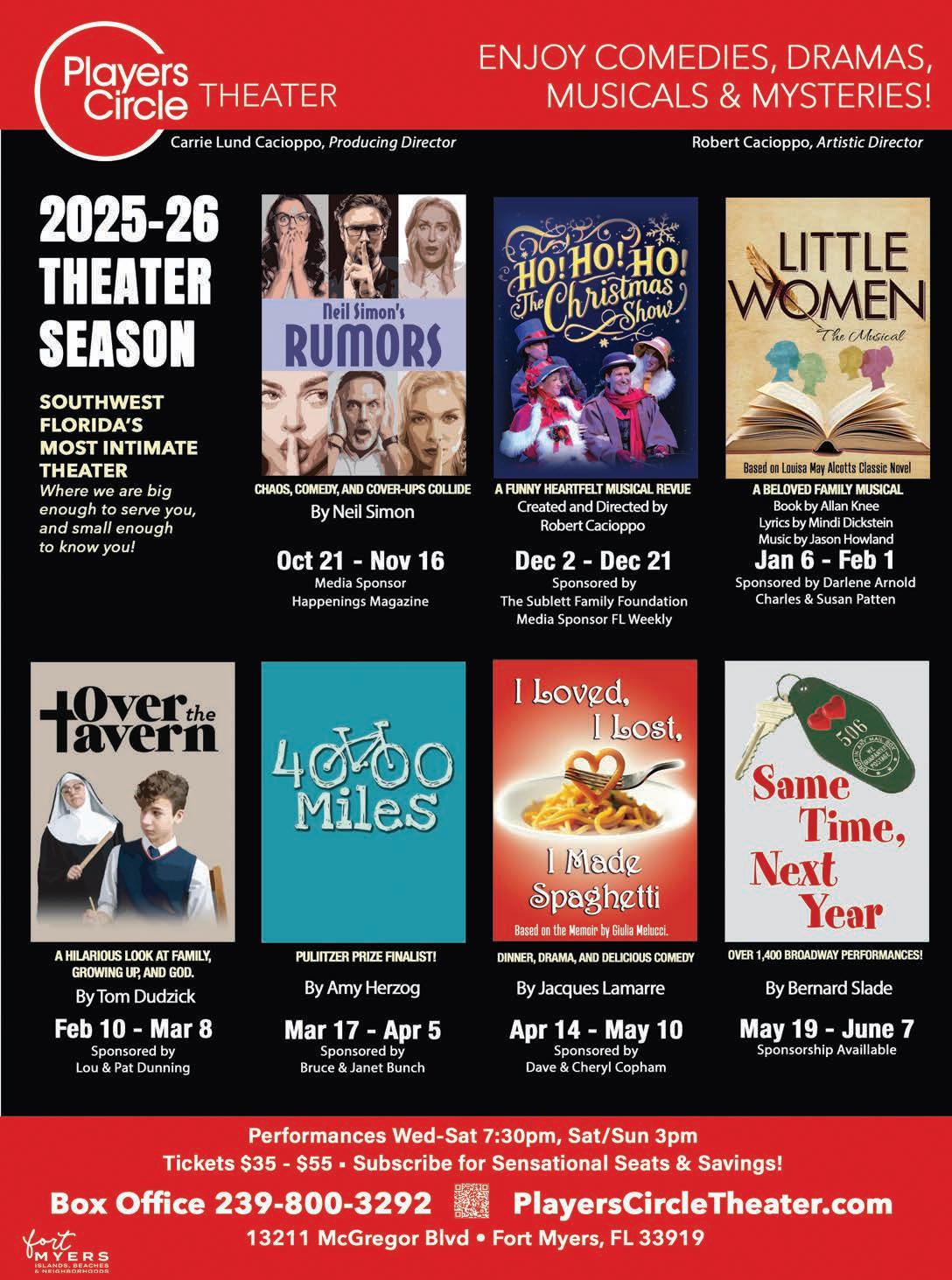 GulfshorePlayhouseinNapleshas announcedthecomplete2025-2026season.PerformancesbeginOct.21.