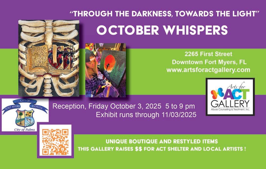 “Wearethrilledtoonceagainbringthecommunitytogetherforaneveningofart,entertainment,and generosity,”saidJenniferBenton,CEOofACT. “Everyticketpurchasedandeverysponsorship pledgedmakesadirectimpactinthelivesofsurvivorsinSouthwestFlorida.”