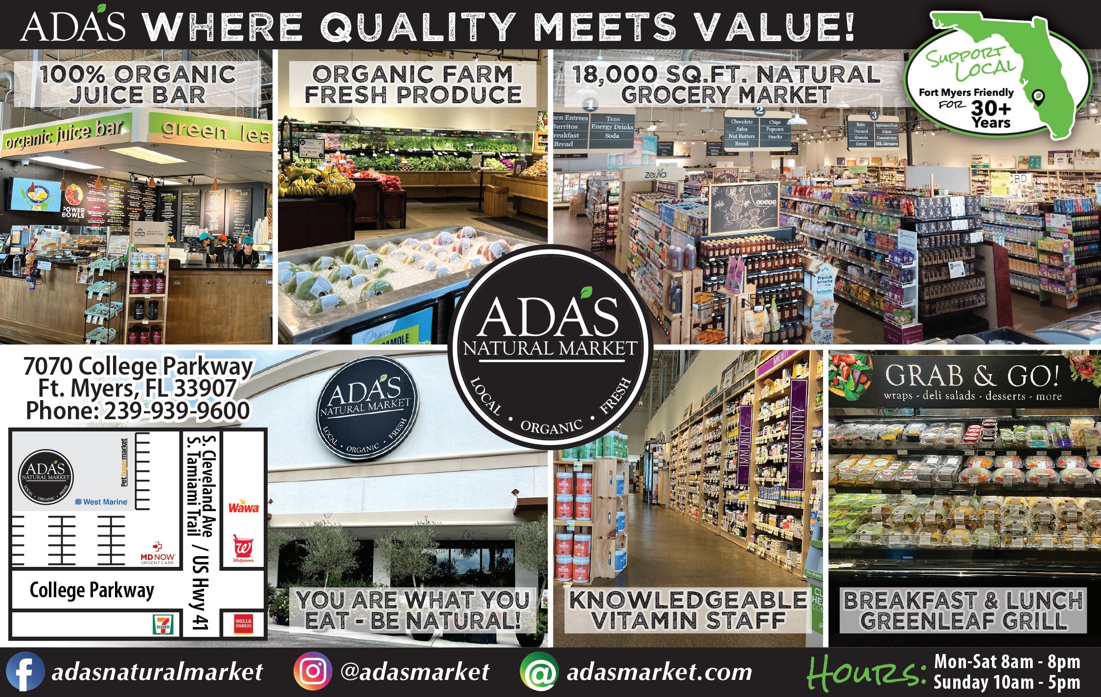 Mon-Sat: 9am-8pm, Sun: 9am-7pm Ph: 239-939-9600 • Fax: 239-288-6210 AdasMarket.com