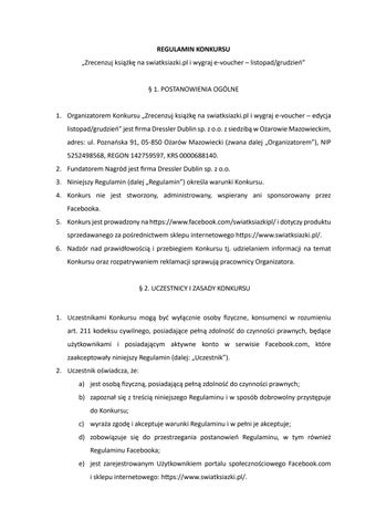 Regulamin Konkursu "Zrecenzuj książkę na swiatksiazki.pl i wygraj e-voucher - listopad/grudzień