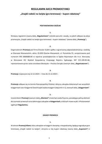 Regulamin Akcji: Znajdź radość na święta (gra terenowa) - kupon rabatowy na kolejne zakupy