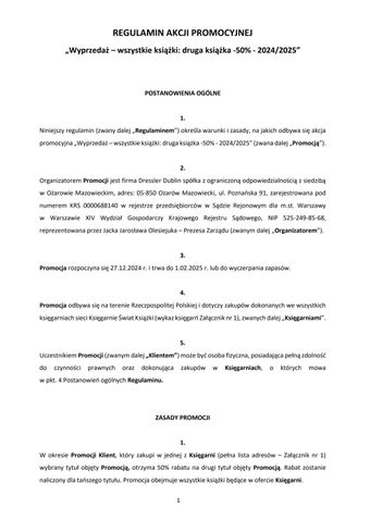 Regulamin Akcji: Wyprzedaż – wszystkie książki druga książka -50% - 2024 2025