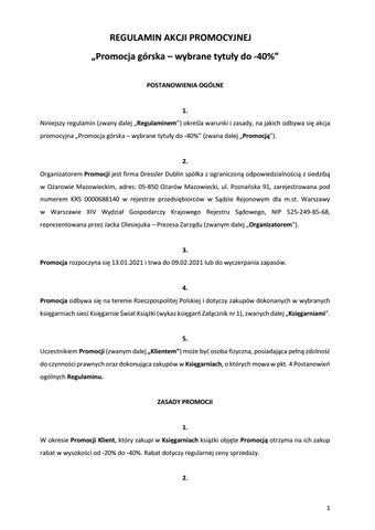Księgarnie Świat Książki Regulamin Akcji: Promocja górska - wybrane tytuły do -40%