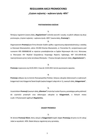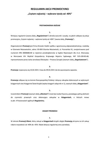 Księgarnie Świat Książki Regulamin Akcji: Czytam najtaniej - wybrane tytuły od -40%