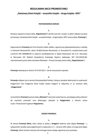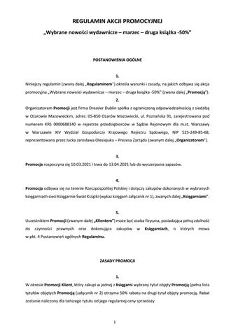 Księgarnie Świat książki Regulamin Akcji: Wybrane nowości wydawnicze - kwiecień - druga książka -50%