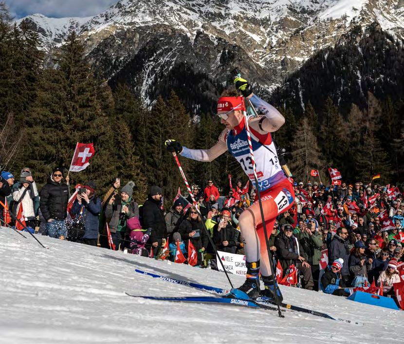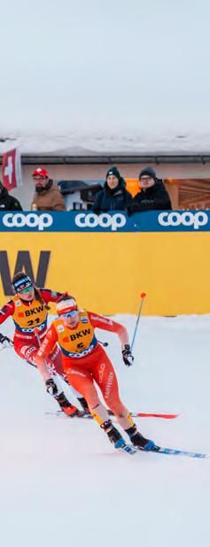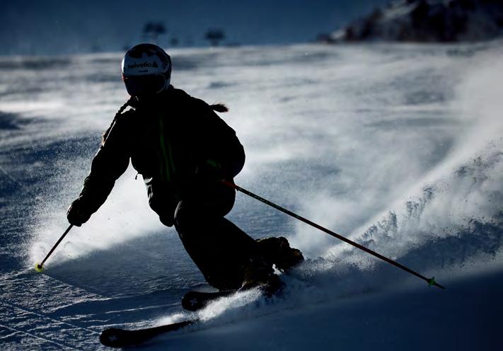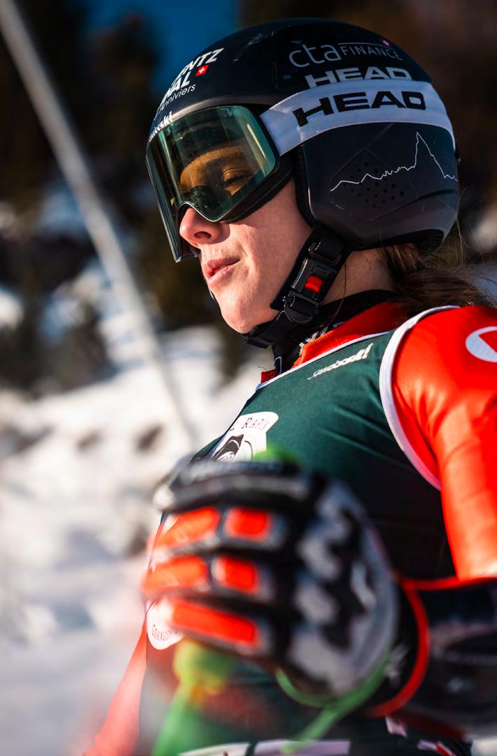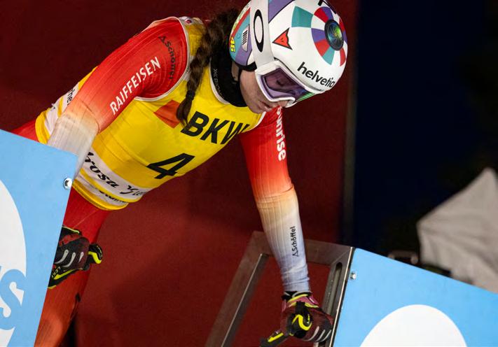 hatte. Doch vielleicht war es zu früh zu gross. Weltcup-Debüt mit 17, Rang 9 im erst fünften Weltcup-Rennen, JuniorenWeltmeisterin, WM-Teilnehmerin 2017 in St. Moritz. Manchmal hilft auch die perfekte Kulisse nicht. Vor der Saison 2017/18 erkrankte sie am Pfeifferschem Drüsenfieber, im darauffolgenden Winter durchlebte sie eine Depression, 2019 z og sie sich eine schwere Verletzung am rechten Knie zu. Ihre Biografie macht Camille Rast glaubwürdig. Die Inspiration, d ie sie den Kindern geben möchte, lebte sie selber. Noch in den Sommern 2021 und 2022 startete sie als Mountainbikerin in der Enduro World Series, sie fuhr Rennen in Italien, Österreich, Slowenien. Mit dem Camper und zwei Kollegen fuhr sie von Wettkampf zu Wettkampf, Hauptsachen, Spass und Adrenalin.