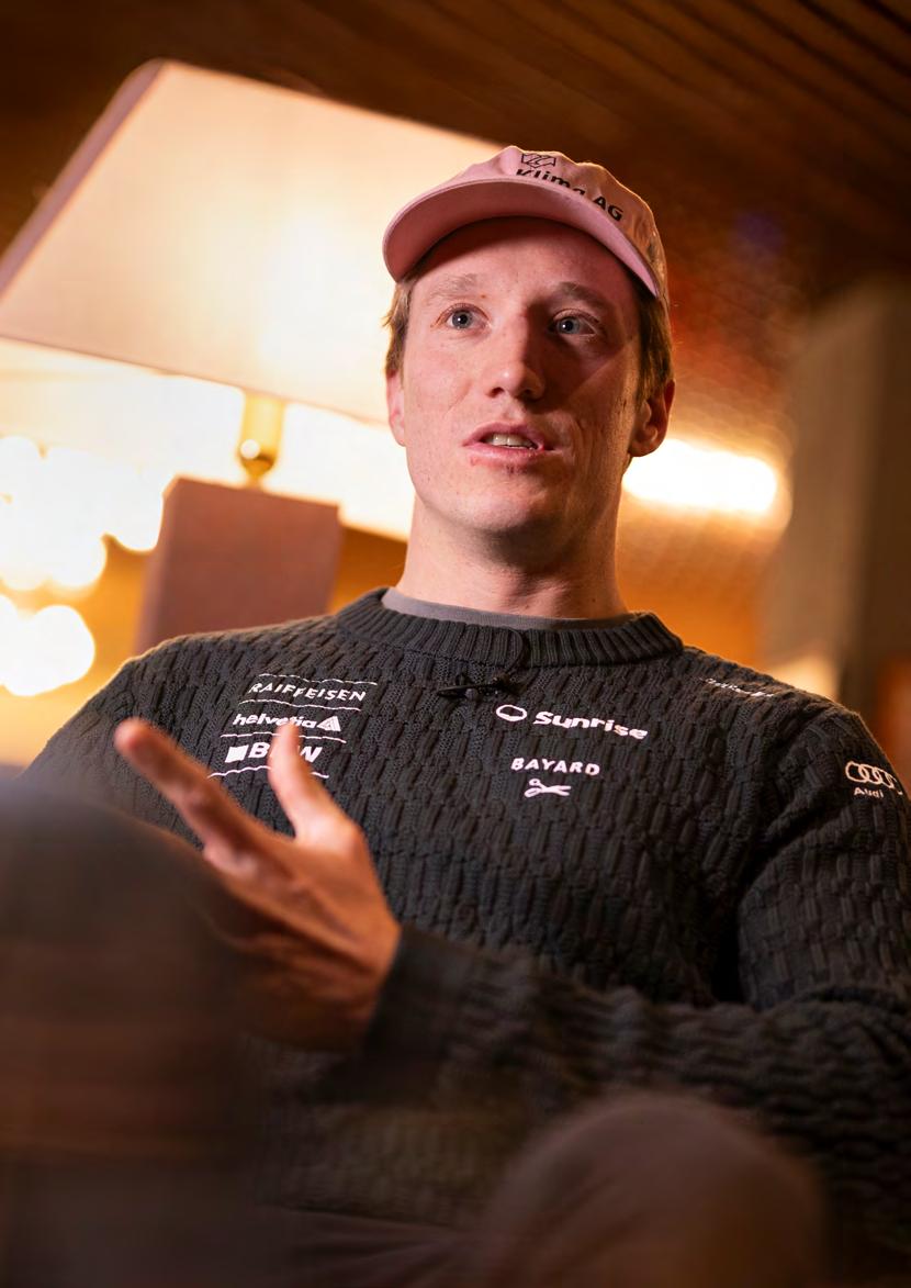 Das Interview mit Camille Rast Ende 2025 findet in Thyon statt, ebenfalls im Wallis, nach einem Training. Für das Gespräch ist im kleinen Tourismusbüro ein Sitzungszimmer reserviert, man hilft sich. Eine Karaffe Wasser, zwei Gläser, zwei «Schöggeli», man verwöhnt sich. Blauer Himmel, pralle Sonne, perfekte Kulisse. Den Fotografen verabschiedet Camille Rast auf Französisch wie einen