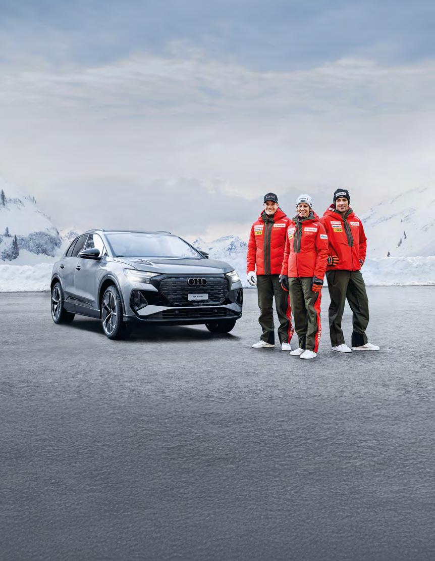 Audi Q4 e-tron Edition Swiss-Ski 45 quattro, 285 PS, 17,2 kWh/100 km, 0 g CO₂/km, Kat. B. Regulärer Preis CHF 65 900.–, abzüglich Swiss-Ski-Preisvorteil CHF 11 320.– (bestehend aus Premium-Bonus CHF 2170.– und MemberPlus-Nachlass CHF 7240.– und 3% Swiss-Ski-Verbandsbonus CHF 1910.–), Gesamtnachlass 17,3%, Barkaufpreis CHF 54 580.–. Effektiver Jahreszins Leasing: 0,99%, Laufzeit: 48 Monate (10 000 km/Jahr), Sonderzahlung: CHF 10 916.–. Leasingrate: CHF 499.–/Mt., exkl. obligatorischer Vollkaskoversicherung. Abgebildet: Audi Q4 e-tron Edition Swiss-Ski 45 quattro, 285 PS, 17,7 kWh/100 km, 0 g CO₂/km, Kat. B. Taifungrau Metallic, S line Exterieur, Räder Audi Sport, 5-Arm-Rotor-Aero, schwarz, glanzgedreht, 8,5 J | 9,0 J × 21, Reifen 235/45 | 255/40 R21, Sportfahrwerk, Sonnenschutzverglasung abgedunkelt, Aussenspiegelgehäuse in Schwarz, Panorama-Glasdach, Entfall Leistungs und Technologieschriftzug, regulärer Preis CHF 73 260.–, abzüglich Swiss-Ski-Preisvorteil CHF 12 590.– (bestehend aus Premium-Bonus CHF 2410.–und MemberPlus-Nachlass CHF 8050.– und 3% Swiss-Ski-Verbandsbonus CHF 2130.–), Gesamtnachlass 17,3%, Barkaufpreis CHF 60 670.–, Sonderzahlung: CHF 12 134.–. Leasingrate: CHF 549.–/Mt. Die Kreditvergabe ist verboten, falls sie zur Überschuldung des Konsumenten führt. Finanzierung über die AMAG Leasing AG. Aktion gültig für Vertragsabschlüsse bis 31.3.2026 oder bis auf Widerruf. Änderungen vorbehalten. Gültig für alle durch die AMAG Import AG importierten Fahrzeuge. Unverbindliche Preisempfehlungen der Importeurin AMAG Import AG. MemberPlus: Angebot nur gültig für Verbandsmitglieder vom Verband Swiss-Ski.