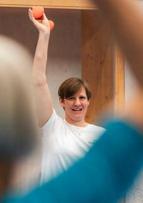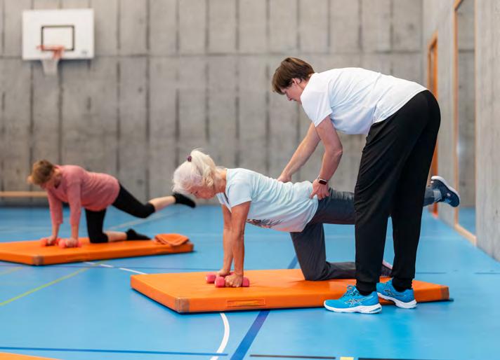commune et a pu engager Daniela Sonderegger-Meuli comme monitrice, Bettina n’a pas tout de suite voulu participer. Comme beaucoup, elle avait une image faussée de la gymnastique pour seniors: des gens assis sur des chaises, qui agitent des rubans en tissu dans l’air... «Daniela nous pousse vraiment, ça me plaît», ajoute Bettina en se dirigeant vers les vestiaires.