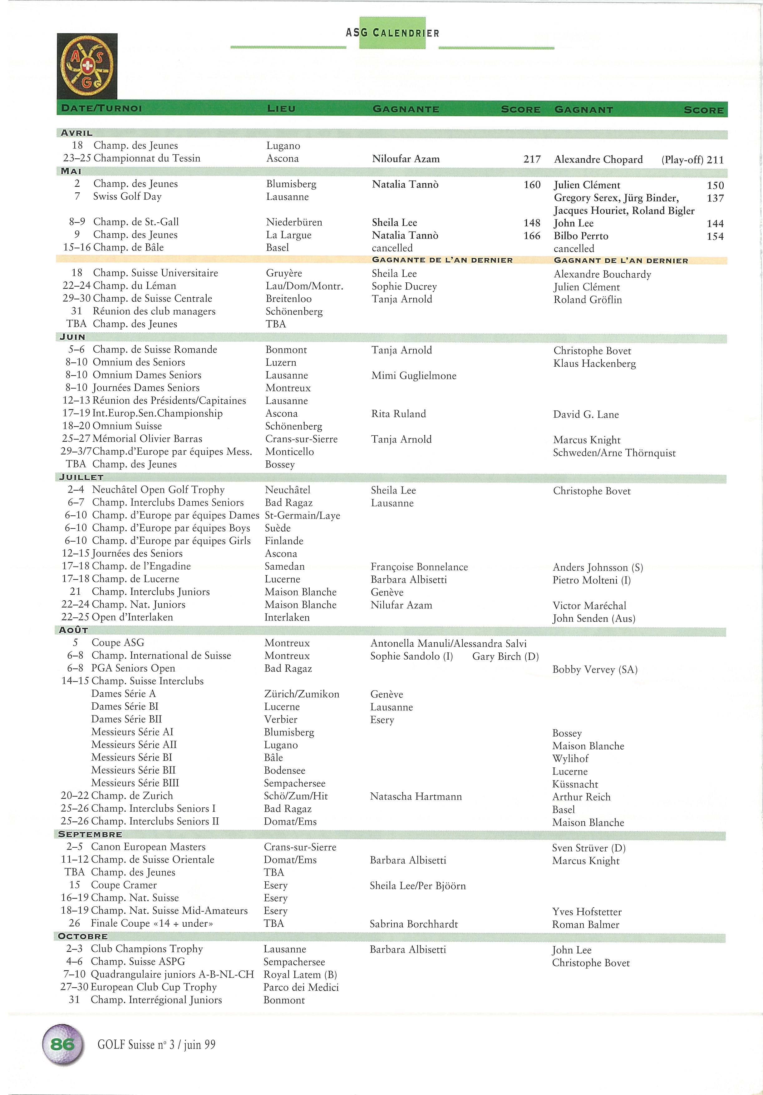 GOLF SUISSE 1999-3 FR