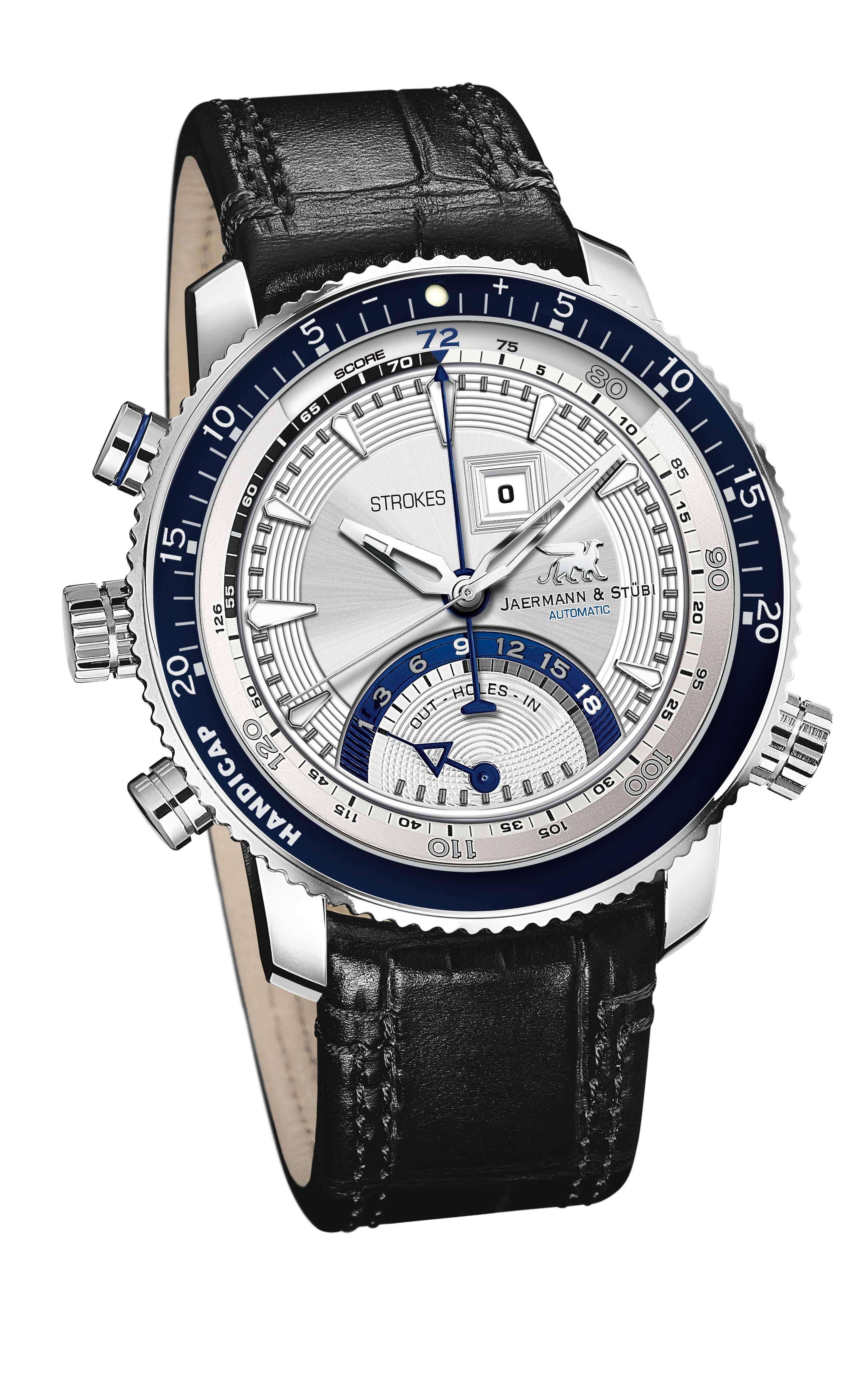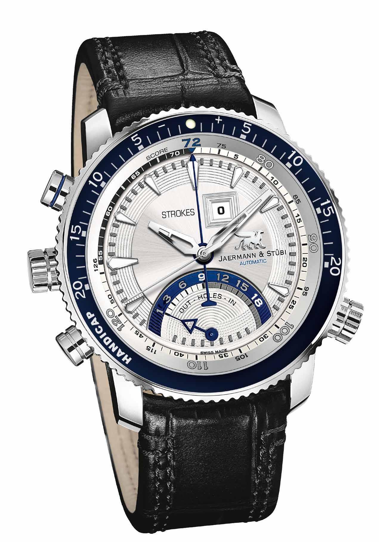 Für das Golfspiel entwickelt, von Pros getragen und von St Andrews Links lizenziert. Modell Hole in One mit patentiertem mechanischem Zählmechanismus für das Golfspiel, Handicapvergleich, Automatikwerk, Shock-Absorber. Erhältlich beim spezialisierten Fachhandel. www.jaermann-stuebi.com