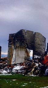 Le restaurant du club avant l’incendie. Seul le noyau en béton a résisté aux flammes. A droite, le modèle des bâtiments provisoires, qui doivent être disponibles à partir du mois de mai.