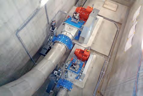 aus rostfreiem Stahl gefertigt, denn langfristig gesehen besteht bei beschichteten Leitungen Abrasion durch Sand mit anschliessender Rostgefahr. Um den Reibungsverlust zu verringern und somit die Leistung der beiden Durchström-Turbinen zu erhöhen, wurden zwei Druckleitungen verbaut. Vor den Turbinen befinden sich Klappen, womit das Wasser dosiert und entweder auf die 1/3- oder die 2/3-Öffnung der Durchström-Turbine geleitet werden kann. Dies dient wiederum einer effizienteren Nutzung unterschiedlicher Wassermengen und kann mit den zwei Turbinen über insgesamt 9 Stufen geregelt werden: Zuerst von 1/3 bis 1/1 der kleinen Turbine, dann dasselbe bei der grossen Turbine (mit doppelter Ausbauwassermenge) und schlussendlich die kleine und die grosse Turbine zusammen. Die Steuerung dieser Klappen geschieht elektronisch und ist im System des österreichischen Unternehmens Jank GmbH integriert. Dasselbe Unternehmen lieferte auch den Stahlwasserbau (Horizontalrechen mit Rechenreiniger und Stauklappe mit Notschwimmer, welcher bei Stromausfall die Wehrklappe reguliert) mit dem Vorteil, dass nahezu der gesamte Service aus einem Haus kommt.