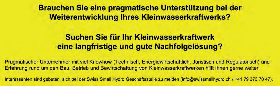 Anmeldung über: www.swissmallhydro.ch/de/verband/zeitschrift/ oder E-Mail an juerg.breitenstein@swissmallhydro.ch