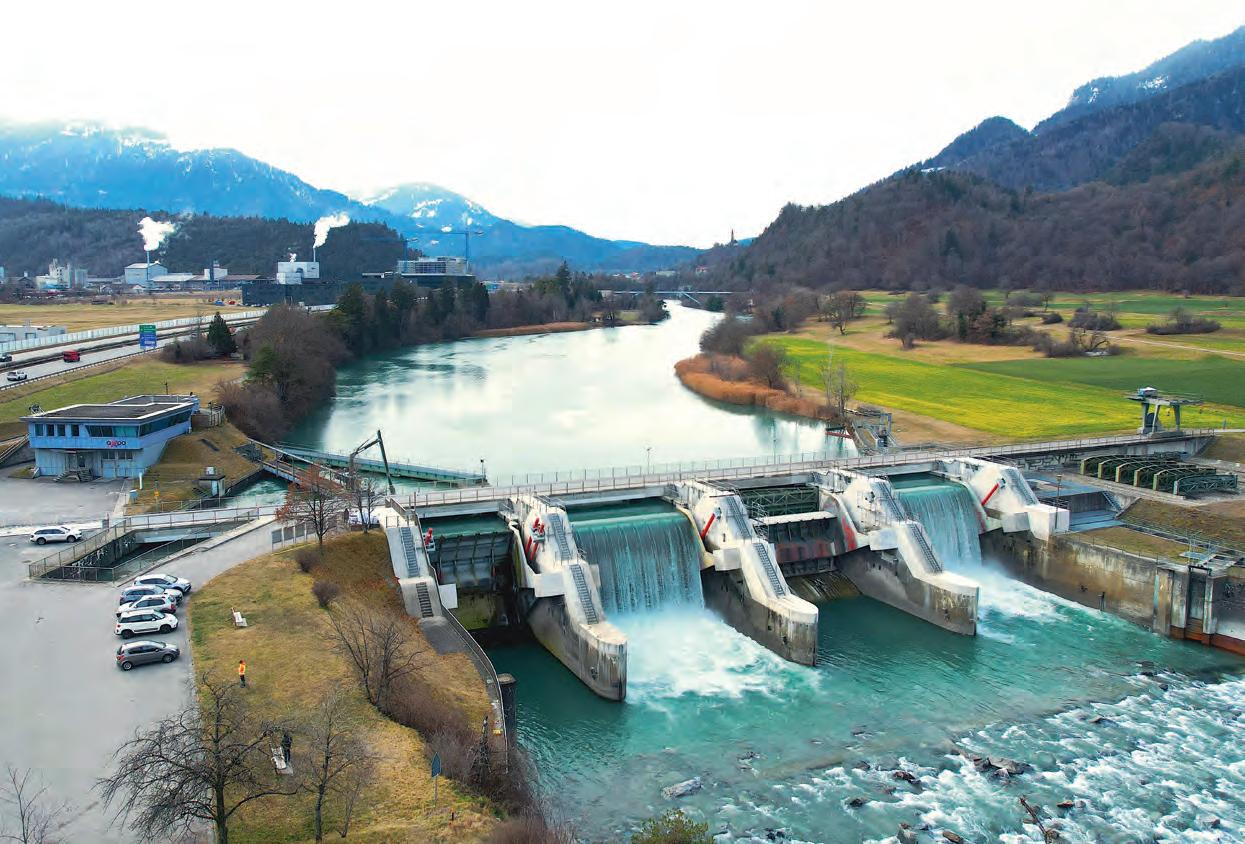 nehmen Etavis ausgeführt. Die Baumeisterarbeiten für die Staumauer und die Zentrale hat die KIBAG in einem Zeitraum von 15 Monaten umgesetzt. Dabei wurden 1 200 m 3 Felsmaterial gefräst (Aushub für die neue Kraftwerkszentrale) und 650 m 3 Konstruktionsbeton in Sichtqualität verbaut.