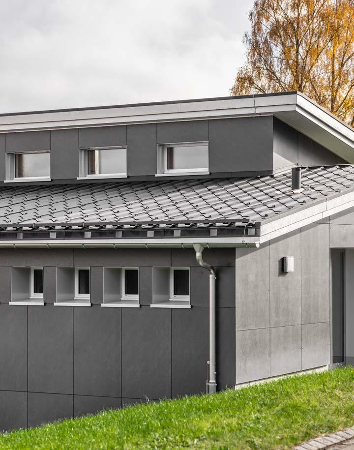 Le système Swisspearl s’intègre à presque toutes les formes de toit et peut être installé à partir d’une inclinaison de toiture de 10°, ce qui offre des libertés infinies lors de la conception et de la réalisation.