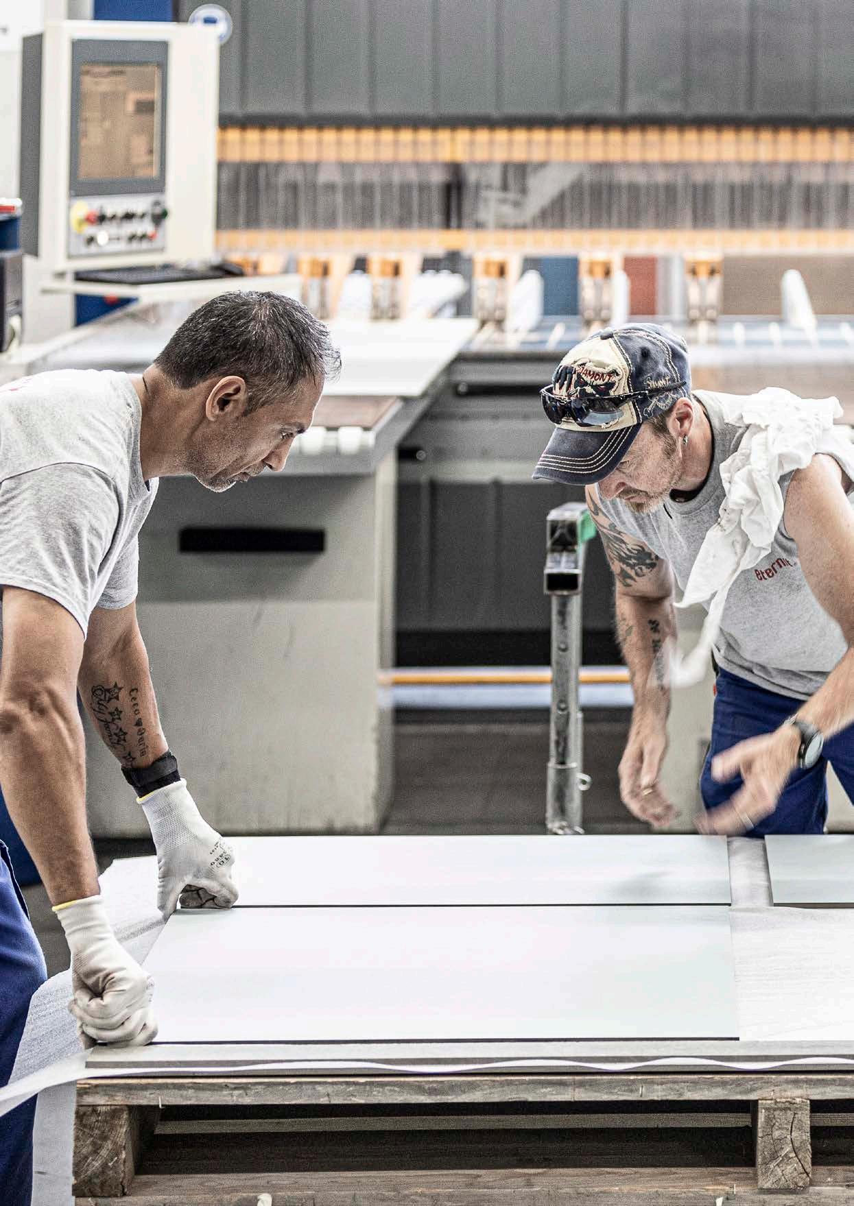 Largeur et longueur de plaques au choix jusqu’à 3050 × 1250 mm au maximum, épaisseurs de plaque de 8 et 12 mm. Patina NXT disponible uniquement en 8 mm.