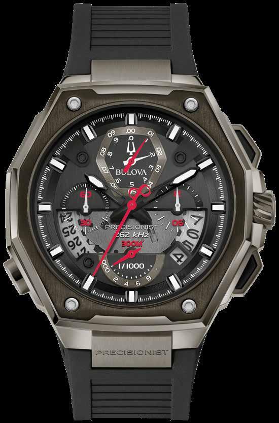 "Una celebración de la tecnología y la innovación en diseño, la colección cuenta con el movimiento de cuarzo de alta precisión patentado por Bulova, con un segundero de barrido suave."