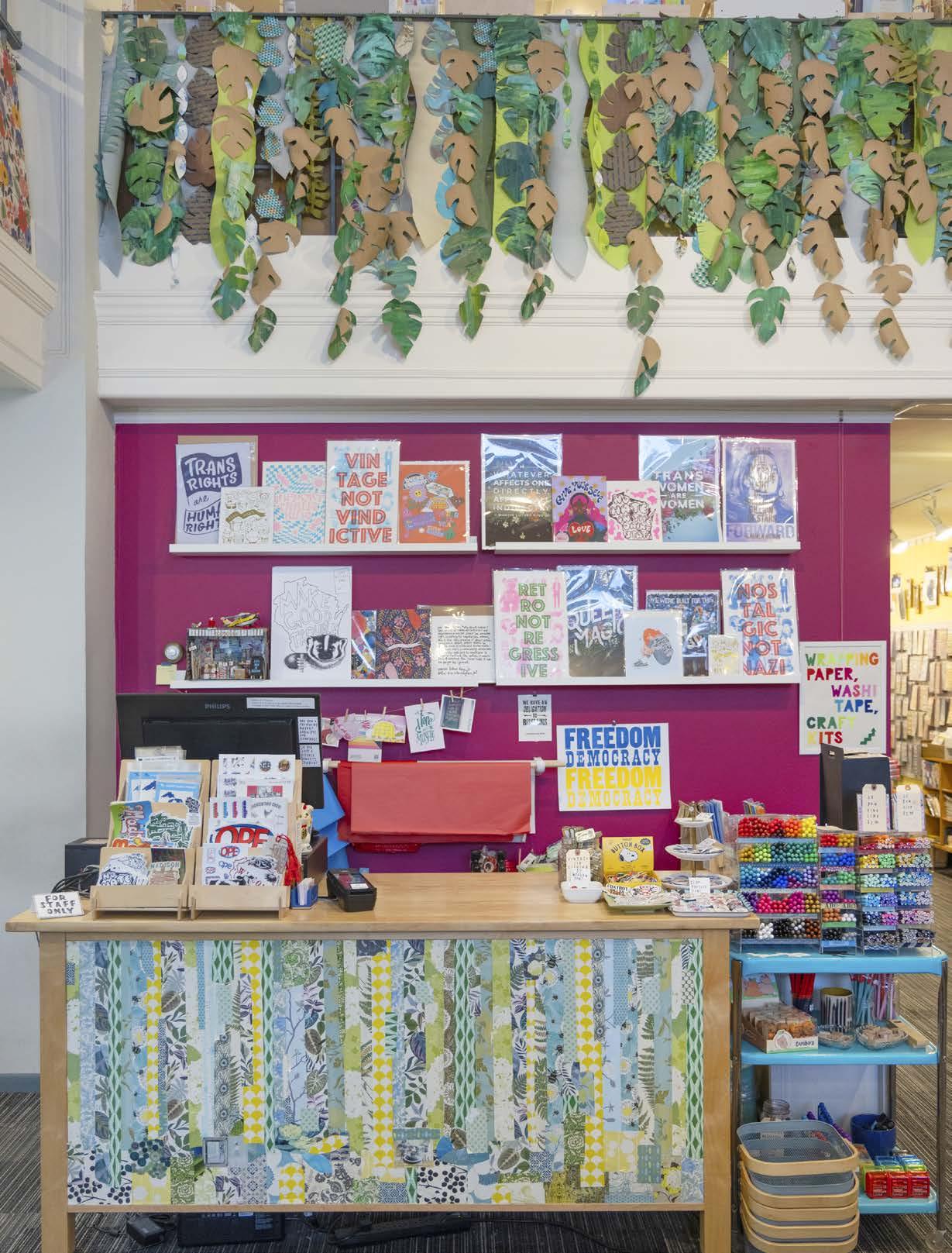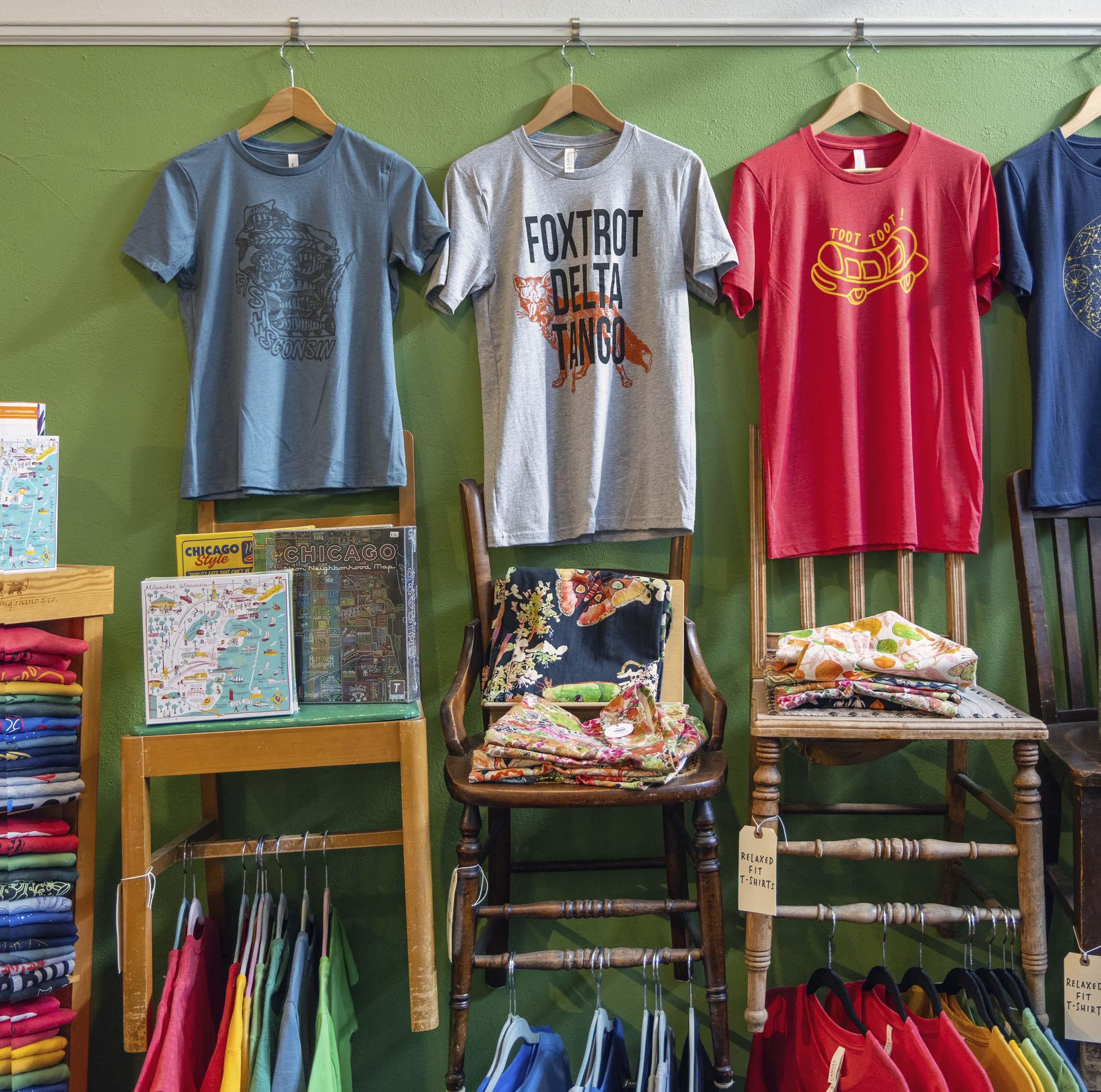 The two-story shop carries a dizzying array of cards, gifts, stickers, T-shirts, and crafting and paper supplies. Laura says the sisters, who work with “easily over 200 vendors,” look for items from smaller letterpress studios and independent artists from across the U.S., although many are from the Midwest.