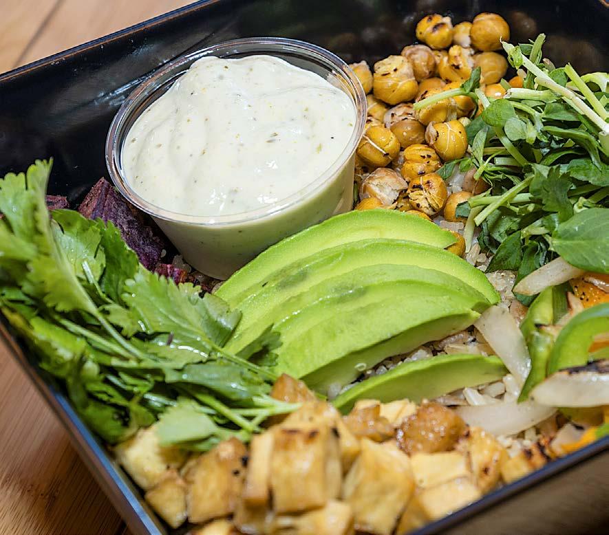 almond chickpea option for no charge. Alchemy’s rotating soup flavors are also frequently plant-based, along with salads like the Maize, featuring a spicy combination of marinated garbanzo beans, veggies and greens topped with a roasted corn dressing. When it comes to sides, its sweet potato fries or roasted garlic mashed potatoes are a must.