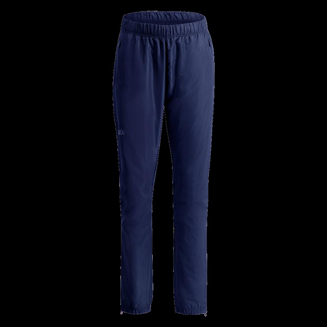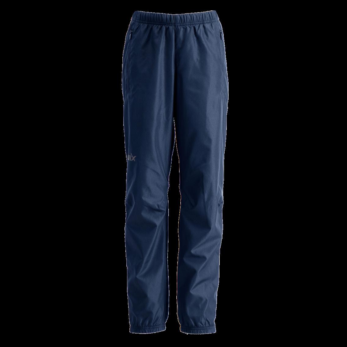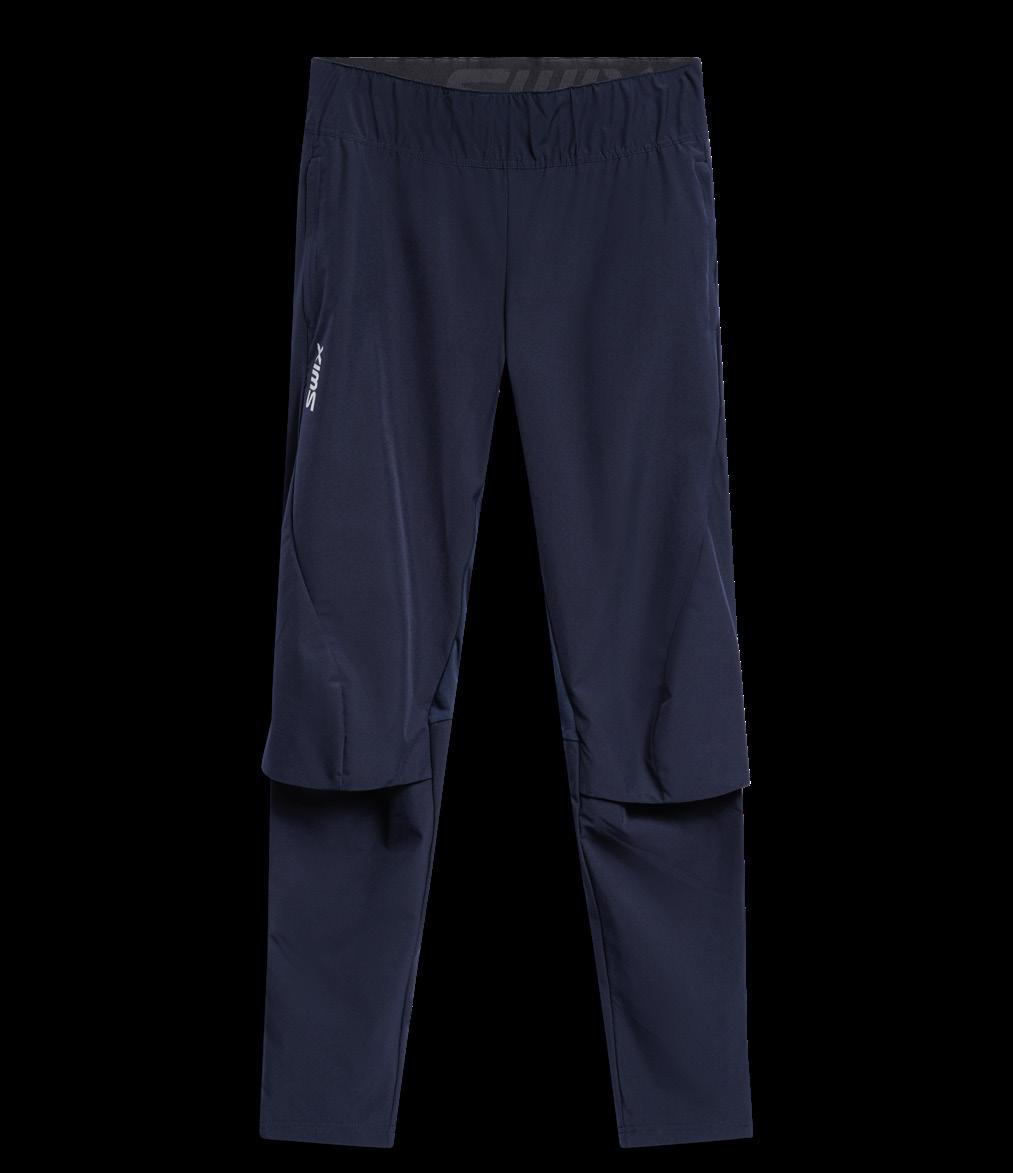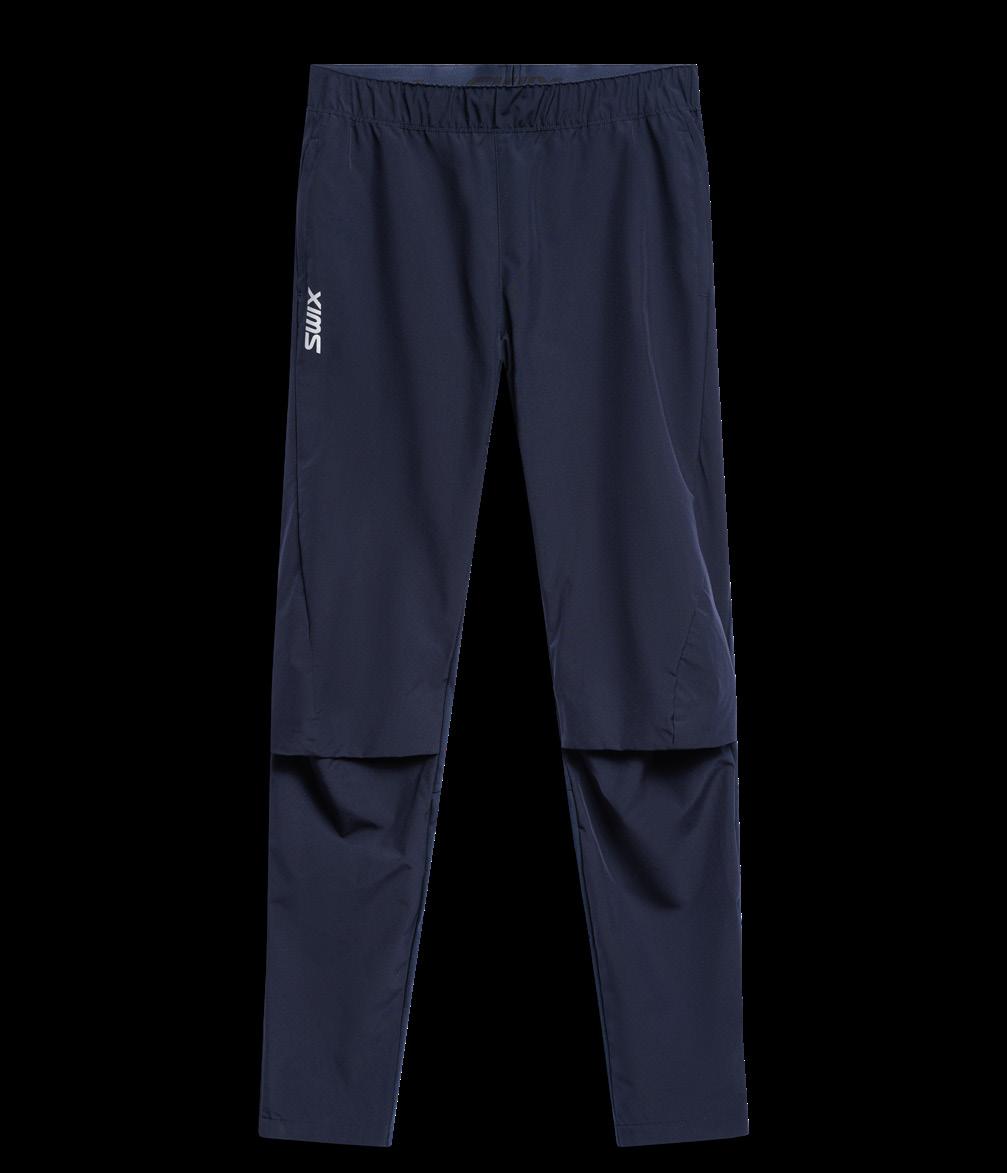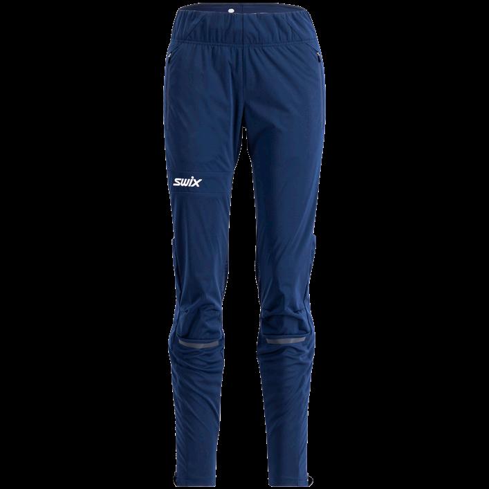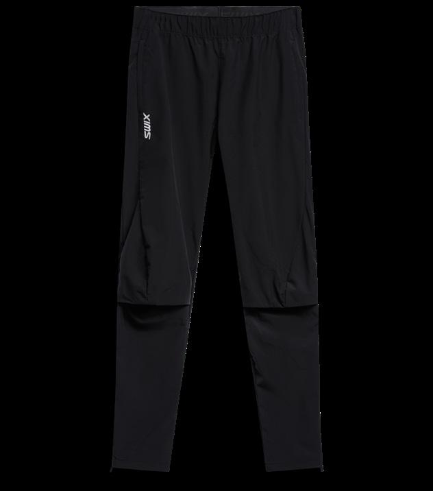 Lightweight XC pants with wind-resistant microfiber front, elastic back panels, and zippered pockets.