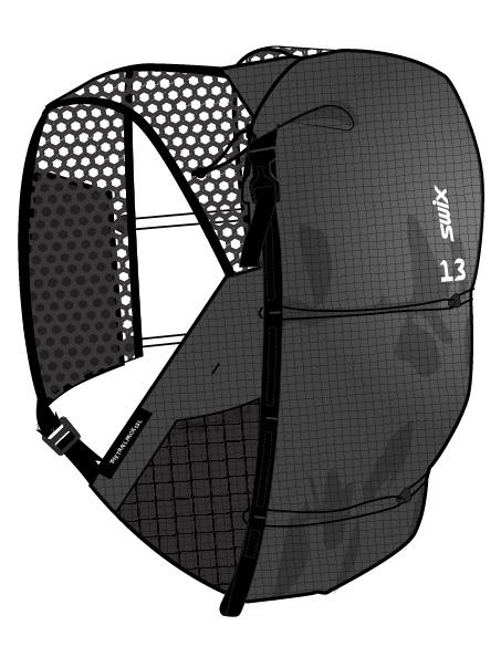 Layered pockets for easy access on the move Height adjustable elasticated chest straps On the move adjustable compression for load stabillity