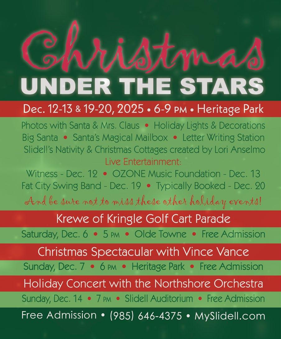 Christmas Spectacular with Vince Vance 5:30pm. Caroling, 6pm Vince Vance & The Valiants. Heritage Park, Slidell.